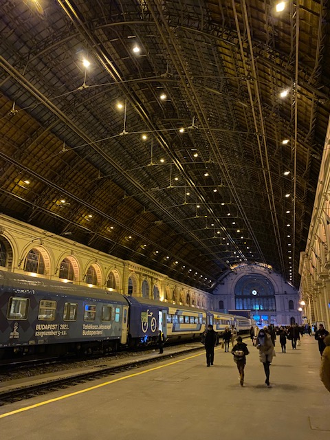 Am preferat trenul pentru această călătorie, întrucât mereu am vrut să am parte de această experiență. Să îmi petrec 17 ore pe tren nu suna prea distractiv, deci m-am orientat către cea mai rapidă opțiune: cea de 13 ore jumătate. Plecarea a fost de dimineață devreme, iar ceea ce mi-a plăcut foarte mult a fost ca trenul era destul de curat și liniștit. Fiind un tren de zi și având doar două vagoane, nu am avut o zonă de restaurant, așa că faceți o aprovizionare zdravănă. Cele mai lungi opriri au fost la graniță (Curtici) și în Lőkösháza, unde s-au mai adăugat câteva vagoane de la compania feroviară maghiară. Am ajuns în Gara Keleti (gara de est) la ora 19 și încă din primele clipe am rămas impresionată de grandiositatea și arhictectura sa.